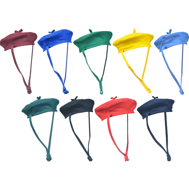 Beret zuchowy to wspaniały kompan zuchowych zabaw! Nakrycie głowy dla zuchenek, w kolorze wybranym dla danej gromady. Wykonany z sukna beretowego (80% wełna, 20% poliamid), wyposażony w ściągacz pod brodę oraz antenkę na czubku.