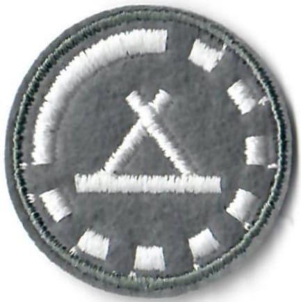 Sprawności harcerskie ZHR żeńskie o średnicy 30mm, haftowana białą nicią na szarym filcu.