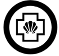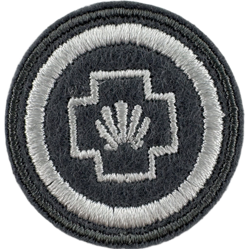Sprawności harcerskie ZHR żeńskie o średnicy 30mm, haftowana białą nicią na szarym filcu.