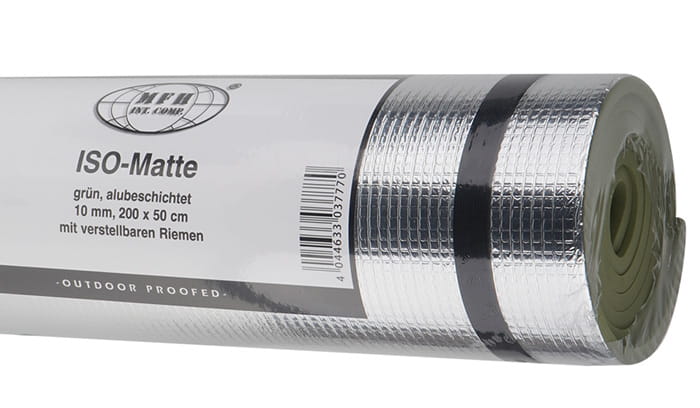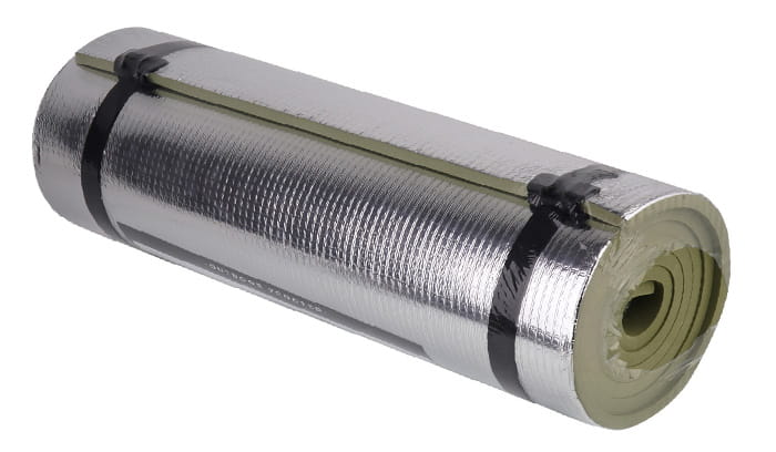 Zwijana karimata z dwoma elastycznymi paskami mocującymi. Wykonana z pianki EVA, pokrytej z jednej strony izolującą warstwą aluminium.