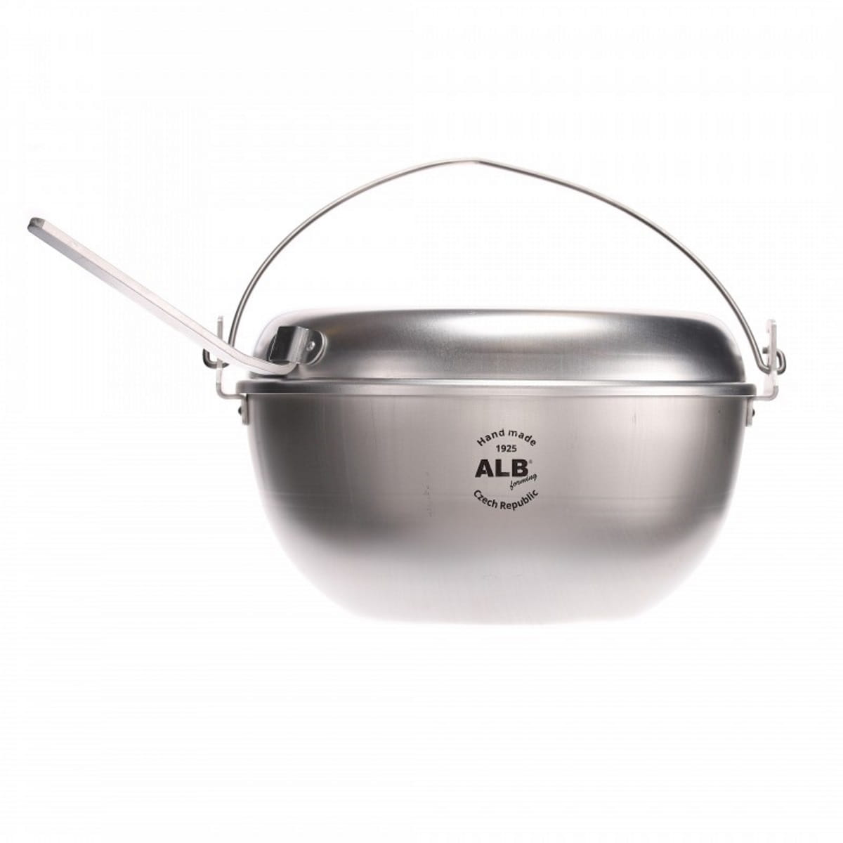 Kociołek aluminiowy z pokrywką czeskiej firmy ALB Forming został wykonany z wysokiej jakości anodowanego aluminium przystosowanego do kontaktu z jedzeniem. W zestawie z kociołkiem znajduje się duża przykrywka, która może pełnić funkcję patelni. Produkt został zabezpieczony dodatkową warstwą ochronną, która zapewnia wysoką odporność na działanie kwasów zawartych w żywności. Wszystkie naczynia produkowane są w Czechach w miejscowości Telnice.