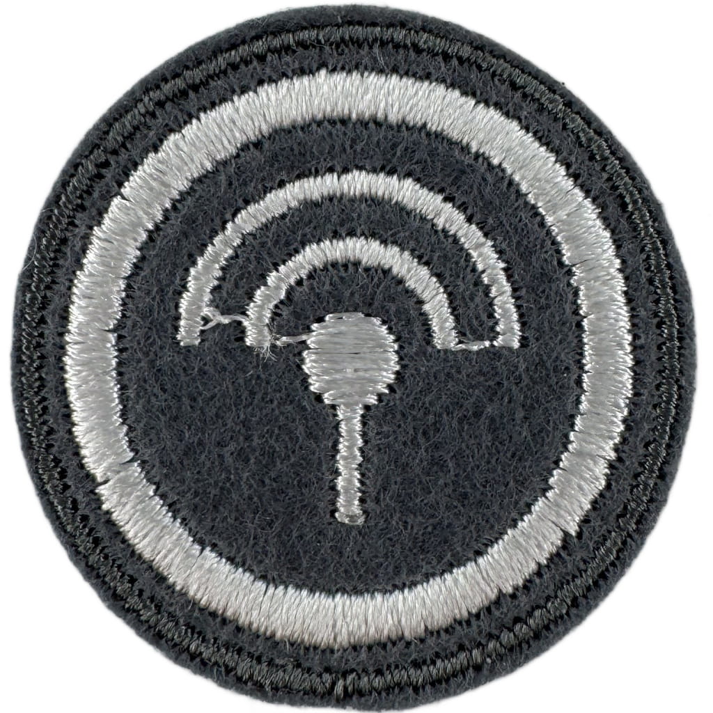 Sprawności harcerskie ZHR żeńskie o średnicy 30mm, haftowana białą nicią na szarym filcu.