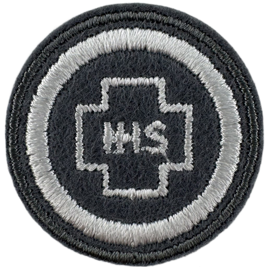 Sprawności harcerskie ZHR żeńskie o średnicy 30mm, haftowana białą nicią na szarym filcu.