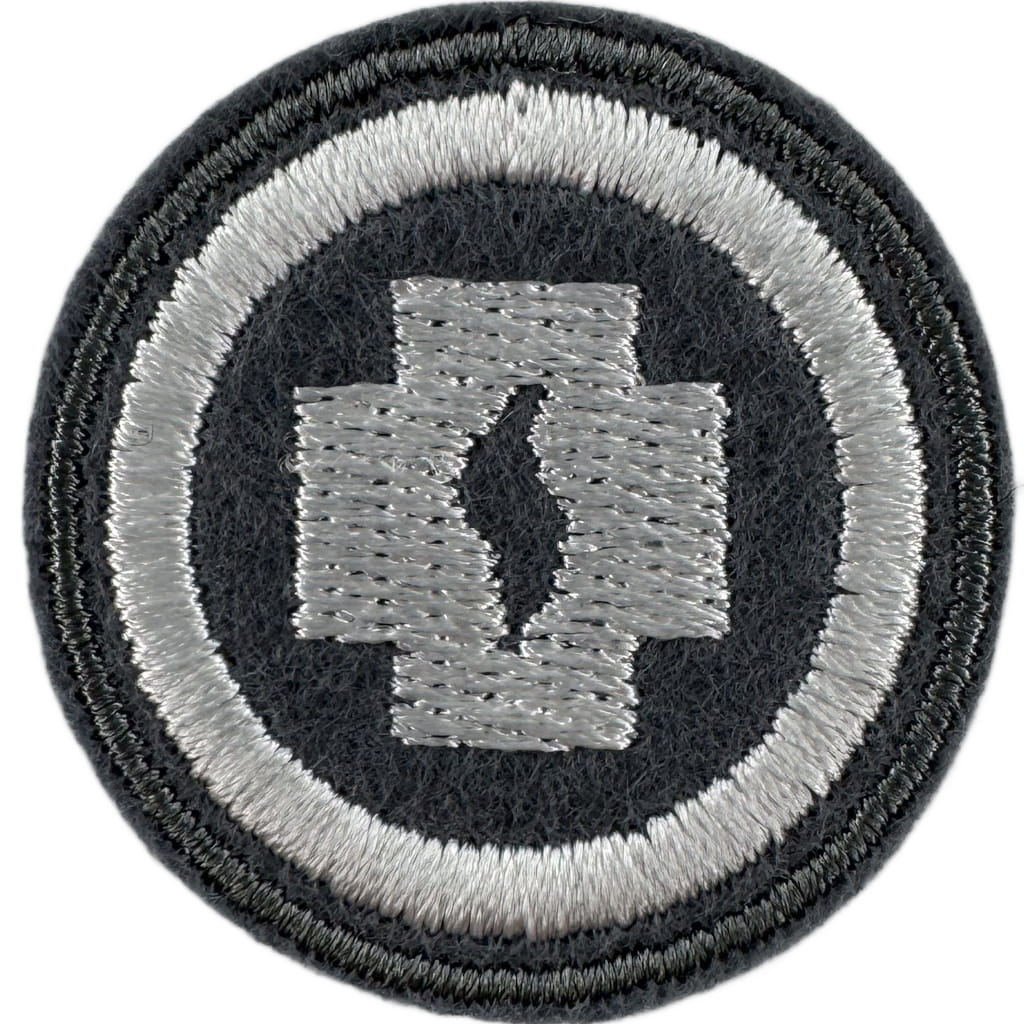 Sprawności harcerskie ZHR żeńskie o średnicy 30mm, haftowana białą nicią na szarym filcu.