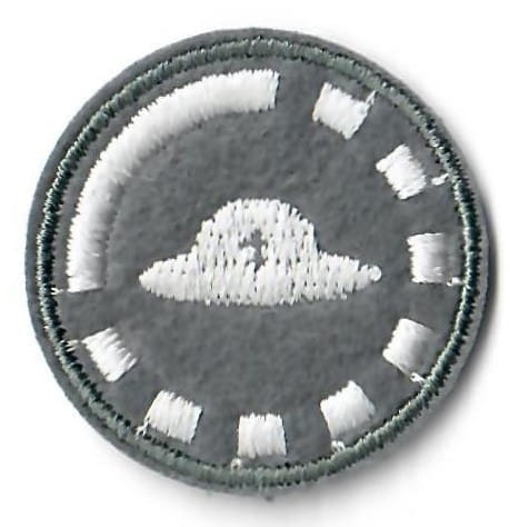Sprawności harcerskie ZHR żeńskie o średnicy 30mm, haftowana białą nicią na szarym filcu.