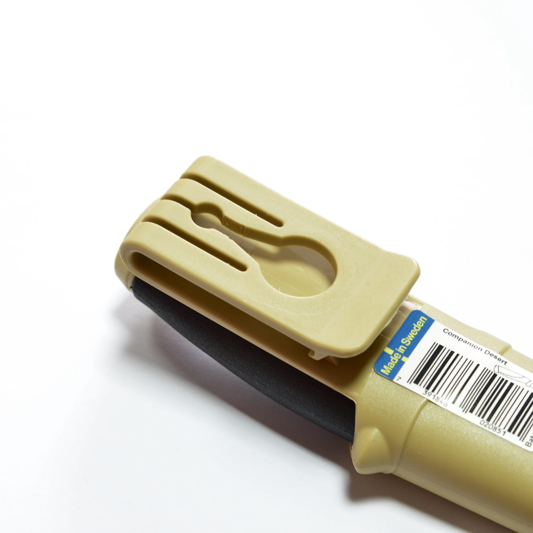 Praktyczna polimerowa pochwa posiada klips służący do prostego i szybkiego mocowania noża do plecaka lub pasa. Na dole pochwy znajduje się otwór drenażowy umożliwiający odprowadzenie nadmiaru wilgoci na zewnątrz.