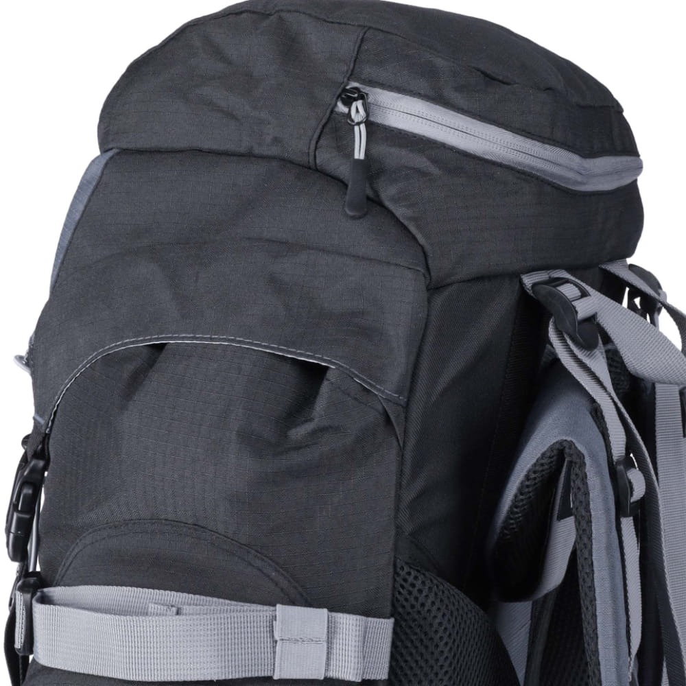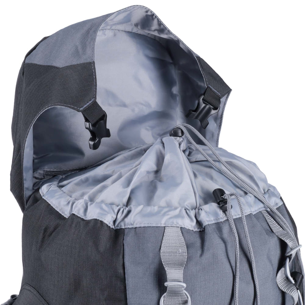 Plecak oferuje aż 7 kieszeni zewnętrznych i wewnętrznych oraz praktyczny daszek, co pomaga w organizacji ekwipunku. Boczne uchwyty umożliwiają przymocowanie dodatkowego sprzętu. Wykonany z wytrzymałego materiału RipStop z wodoodpornym wykończeniem, dodatkowo wyposażony w zintegrowany pokrowiec przeciwdeszczowy – sprawdzi się w każdych warunkach pogodowych.