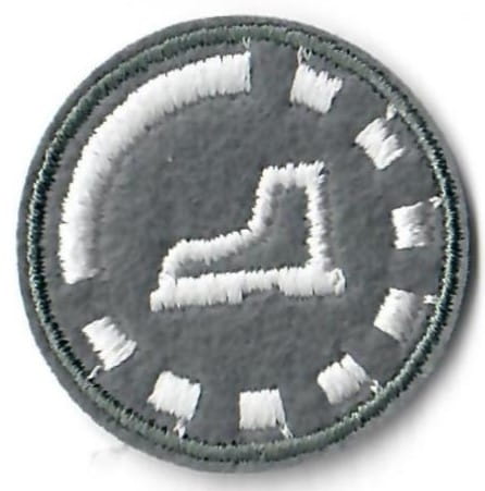 Sprawności harcerskie ZHR żeńskie o średnicy 30mm, haftowana białą nicią na szarym filcu.