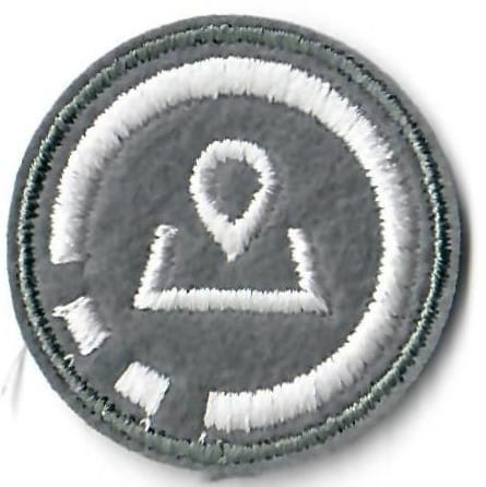 Sprawności harcerskie ZHR żeńskie o średnicy 30mm, haftowana białą nicią na szarym filcu.