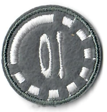 Sprawności harcerskie ZHR żeńskie o średnicy 30mm, haftowana białą nicią na szarym filcu.
